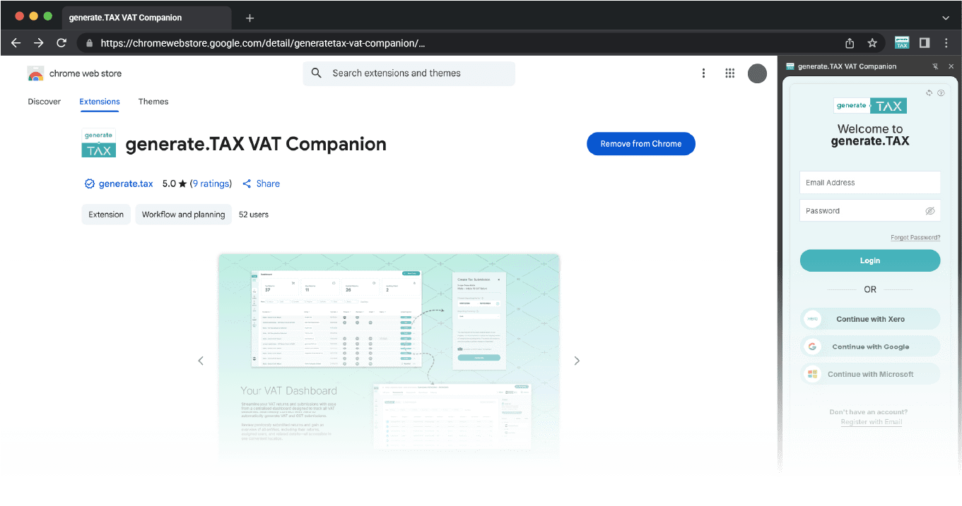 - Find the generate.TAX VAT Companion in the Chrome Web Store or Microsoft Edge Add-ons.